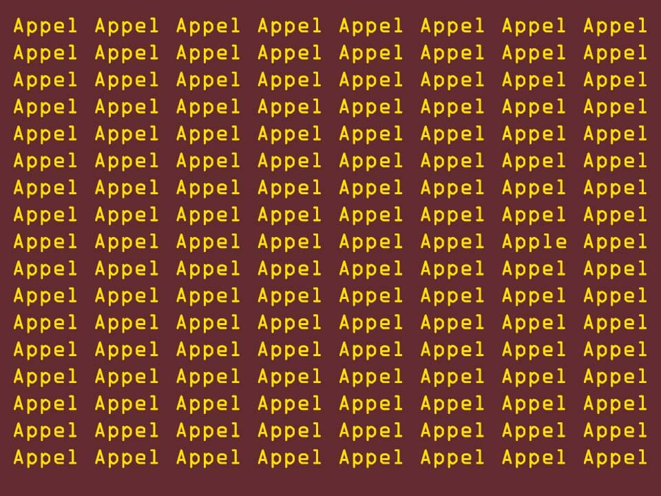 Get ready for today’s mind-bending optical illusion puzzle! We’ve got a tricky image packed with the word “APPEL” repeated everywhere — but sneakily tucked in among them is the correctly spelled “APPLE.” If your eyes are razor-sharp, you can track it down in only 10 seconds.